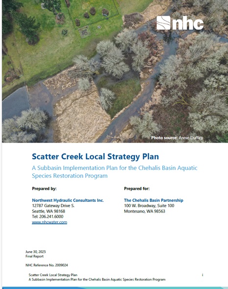 In 2025, the Chehalis Basin Partnership completed development of a restoration strategy for Scatter Creek, which accounts for local values and ecological need. The strategy compiled information and studies about the watershed as a page on the Salish Sea Wiki, available here: https://salishsearestoration.org/wiki/Scatter_Creek_Watershed